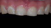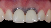 Cirugía para eliminar pigmentación en la encía de los incisivos superiores y elaboración de coronas de disilicato de litio.